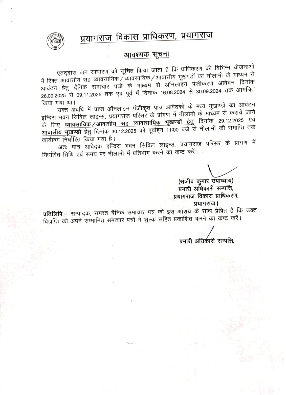 Vice Chairman, Prayagraj Development Authority, Prayagraj |